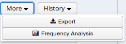 To export search results, open the menu "More" between the Search and History buttons and select "Export":